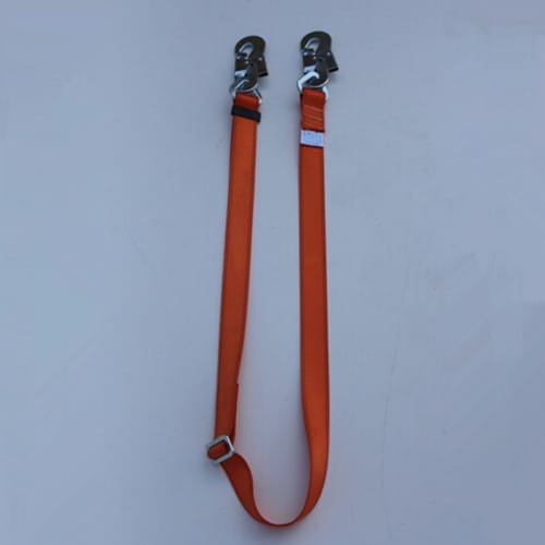 围杆带(又名定位带) 结合电工安全带使用 带体材质:涤纶长丝 带体宽45mm 可调节长度2米 带体破断22KN 围杆带两端各有一个锻造小钩连接三角环 五金件均是进口件