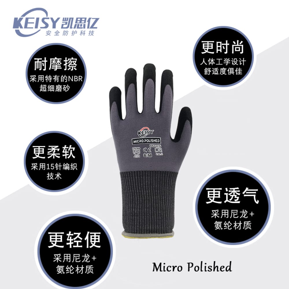 凯思亿NNPR15 15针灰莱卡丁腈超细磨砂工作通用手套