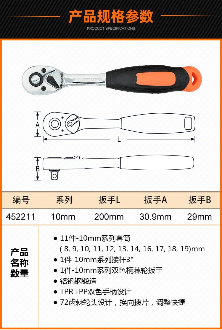 EVERPOWER/艾威博尔45221113件10mm双向快速棘轮扳手组套13件套(单位:套)