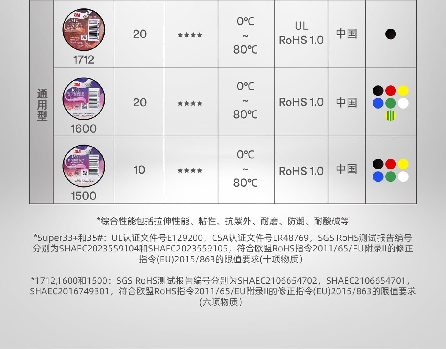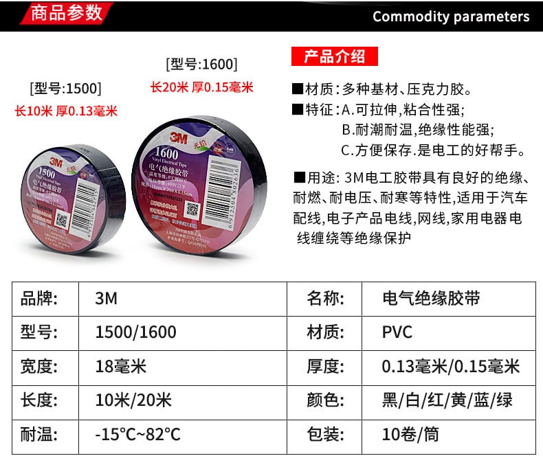 3M electrical tape, PVC electrical insulation tape, lead-free, moisture-proof, high-temperature resi