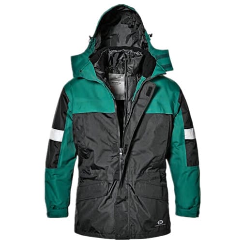 保暖外套,三合一款式,内胆可脱卸,透气防水涤纶外层,内胆克重180g/m2,设计活泼,折叠隐蔽风帽。