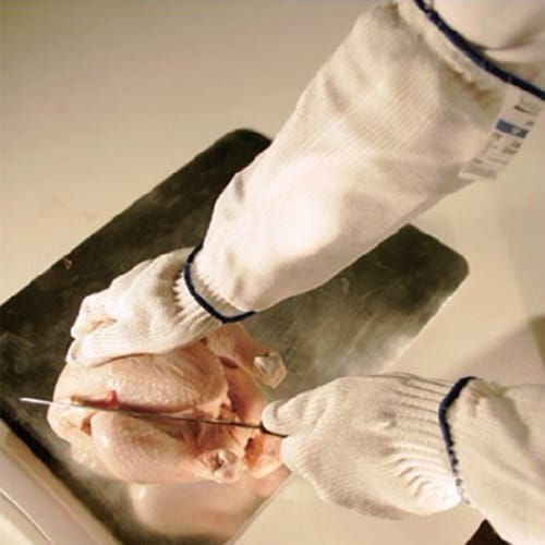 产品描述: 高性能、防切割 用高科技纤维制造而成的 Safe-Knit 袖套, 防割性可与不锈钢相比,带来卓越的舒适感和灵活性。可重复洗涤(甚至还可用漂白剂清洗),而不会降低灵活性或防护特性。彩色编码袖口,方便识别和配对。 主要适用行业 纸张加工,处理注塑和塑料零部件吹塑成型,金属加工,肉类和家禽类加工。 颜色:白色
