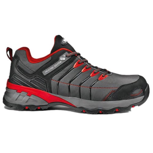绝缘安全鞋,三色丁腈鞋底,高强度柔软面料鞋面,透气性好。铝制包头,合成材料防穿刺中底,防滑等级SRA。