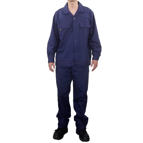全棉防静电工作服套装可以保护使用者免受外部机械损害,但只用于防护轻微风险,不用于防止化学、电和热风险。本夹克可提供一般保护,可防静电。防静电等级:B级(GB)。缩水比例(根据美国标准): 3%。