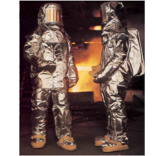 该隔热服外层采用耐高温镀铝玻璃纤维,内层是可防潮气、蒸汽的衬里,包括热的液体、蒸汽。