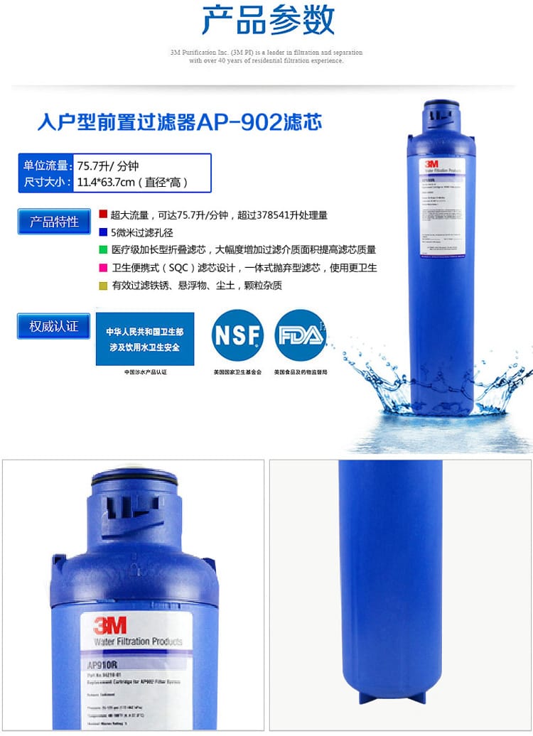 3M净水器滤芯 3M AP902 全屋精滤系统替换滤芯