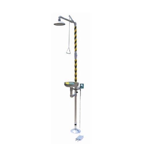 不锈钢复合式洗眼器配备喷淋系统和洗眼系统,采用SS304材