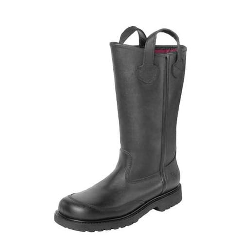【商品介绍】: 符合美国 NFPA 1971-2007标准。 14”高,皮革Bunker款,采用固特异橡胶镶边,重型军用AB皮革,Vibram®密集缝合,凸型边缘鞋底,Cambrelle®衬里,100%Kevlar®隔热内衬,Crosstech® 防水透气层,钢包头,护腿板,快拉式鞋带,回火钢垫片,不锈钢底板。 尺码6-11。