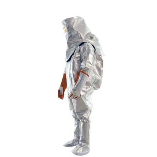 防金属喷溅连体隔热服,衣服,长裤,头罩,手套/套靴等,表面镀铝Preoxpara-aramid面料。