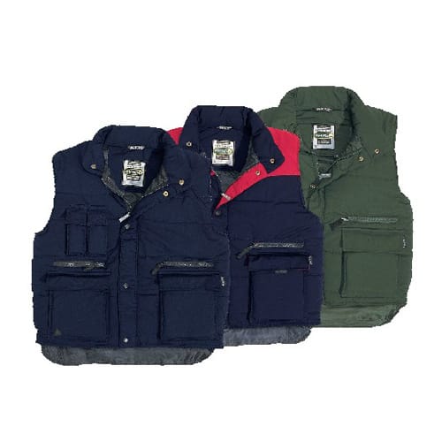 保暖马甲,65%聚酯涤纶,35%棉。聚酰胺衬里。领口有固定扣。前面拉链外有沿边,并由粘扣扣牢。衣服下方有2个口