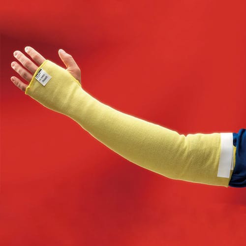 这种双层套袖全长45厘米,使用100% Kevlar 纤维制造,可提供抗割性能、柔韧和舒适性。GoldKnit TM套袖可以保护前臂免受轻度灼伤和高温。