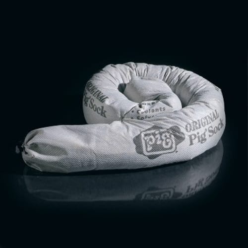 用 PIG® 条形吸污袋围住溢漏的地方,将液体控制住