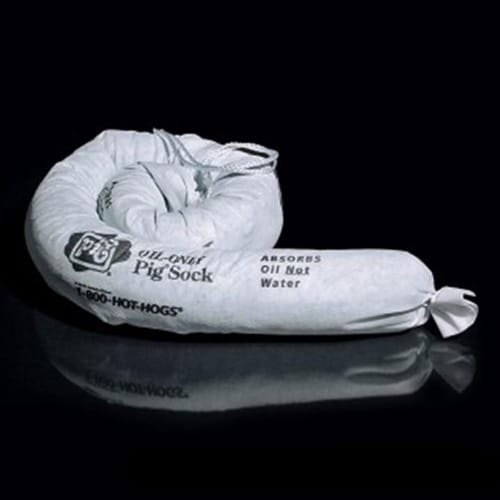 PIG® 条形油污专用吸袋采用可模塑设计,因此能适用于各种墙角和机器底座以阻止液体扩散