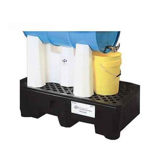 可以在可放置两只桶的防溢托盘上放置一个桶架来接住泄漏及滴漏;或在可放置四只桶的托盘上并排放2个桶架