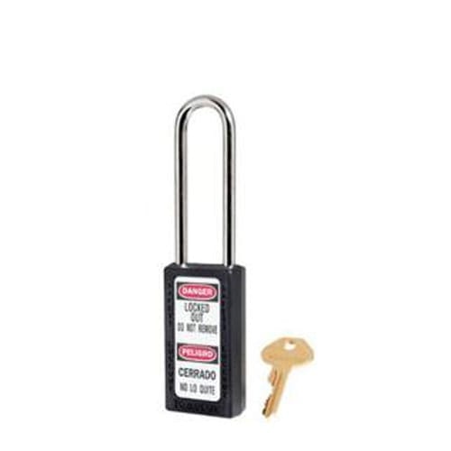 宽1-1/2" (3.8cm)高3" (7.6cm)的 Xenoy黑色锁体,锁钩尺寸为1-1/2"(3.8cm) 专为停工/挂牌应用而设计 耐用、轻巧、绝缘D的 Xenoy锁体 现场订制的永久性书写标签 符合 OSHA“一位员工,一把锁,一把钥匙”的指导标准 高安全系数,拥有安全备用锁胆 留匙特性---确保挂锁不会在打开状态被留在现场 不同花钥匙 6弹子锁胆 商用大包装,货架6枚装,外箱36枚装