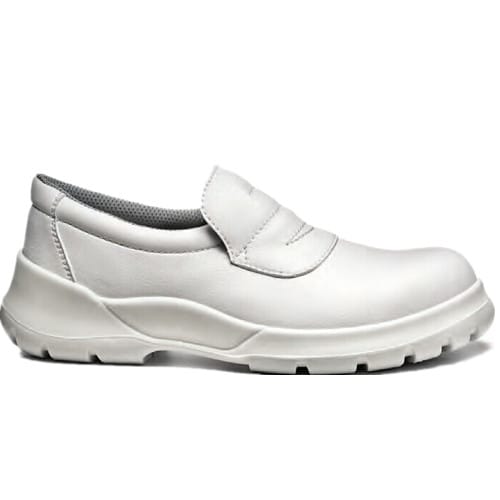白色安全鞋,单密度聚氨酯底,超细纤维帮面,防水,防砸,防静电,防滑。尺码:35-38。