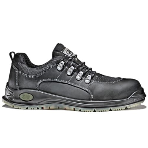 •低帮安全鞋,黑色磨面皮和尼龙镶拼,TPU鞋底。