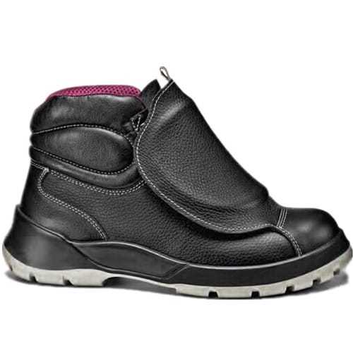 跖骨防护安全鞋,白色PU鞋底,黑色粒面皮,防砸防穿刺,鞋面防水,防滑等级SRC。