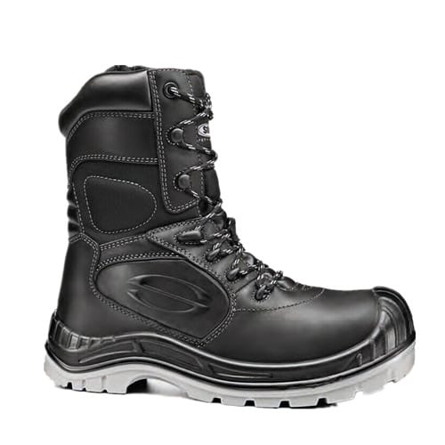 黑色防水粒面皮,鞋尖有附加保护头,防砸,防刺穿,防静电,SRC防滑等级,鞋面不透水