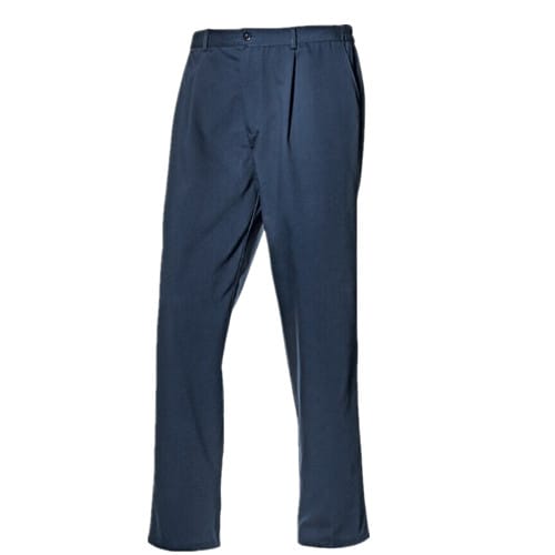 长裤,100%棉,200g/m2,蓝色,收腰松紧带,一个后袋,两组侧袋:一个尺袋和一个笔插袋。