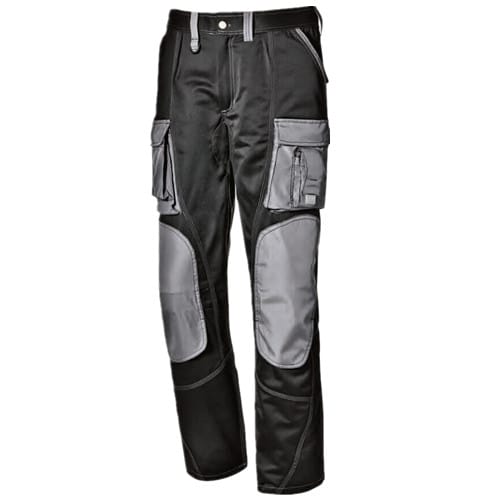 功能性长裤,涤棉65/35,270g/m2,全新设计,款式别致,黑色带灰色镶拼,多个功能性口袋,膝耐磨强化保护。