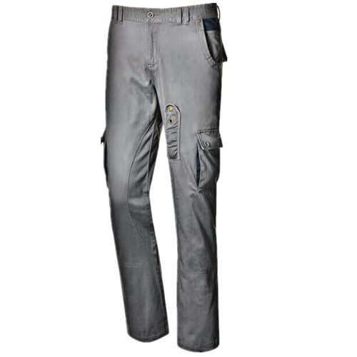 97%克重270g/m2的全棉斜纹布/3%氨纶面料,弹性效果。后部有对比色镶拼,两个前袋、两个后袋、两个裤腿立体袋。