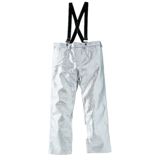 隔热防护背带裤,分体式,涂铝Aramidic材料,前襟金属按扣,带粘扣翻边密封固定,背带可调节。EN11612CE:A1B3C4E3F3。