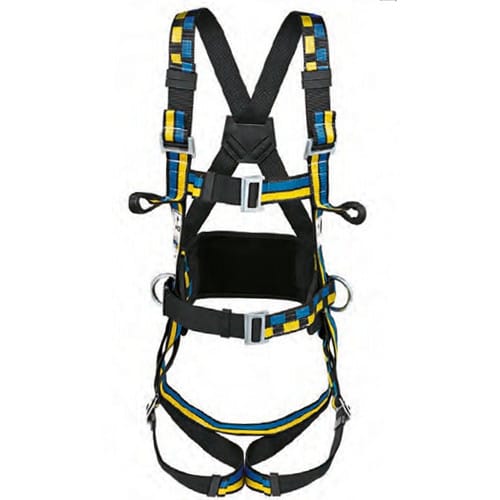 挂点:坠落防护系统为2个前胸编织带挂点和1个背部D型挂点,及2个用于工作定位的侧挂环。