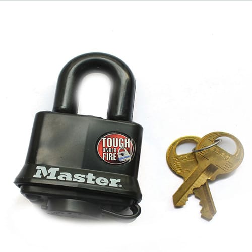 产品描述 40mm宽,25mm锁钩净高, 10mm锁钩直径黑色全包胶耐极端温度钢千层锁 锁体全包胶放风雨处理,锁钩耐切割淬硬钢锁钩。 防撬双横栓锁紧机构. 防挑取精密弹子锁胆。 终生保用,适合室外防锈应用。 建议使用范围 小屋 大门 工具车