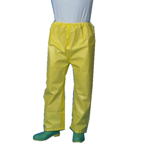 面料: 亮黄色高密度聚乙烯膜(HDPE)+纺粘聚丙烯无纺布(纺粘PP)---87克/平米 典型应用: 承压清洗作业;化学容器清洗作业;农业喷洒作业及农业处理;有害干燥颗粒处理作业;低毒化学物质混合配制;化学品处理;抗血液及病菌的渗透