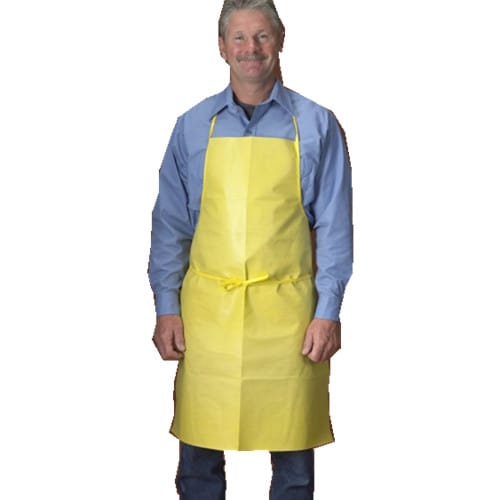 面料: 亮黄色高密度聚乙烯膜(HDPE)+纺粘聚丙烯无纺布(纺粘PP)---87克/平米 典型应用: 承压清洗作业;化学容器清洗作业;农业喷洒作业及农业处理;有害干燥颗粒处理作业;低毒化学物质混合配制;化学品处理;抗血液及病菌的渗透