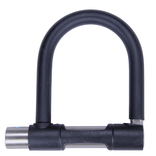 钢锁体有着高强度。 淬硬钢锁钩防剪切 乙烯基包胶锁体和锁钩,防刮花。 8353高强度U型锁,抗20吨液压钳,防断线钳,防锯,防钻,防扭,防技术开启。 193mm宽U型锁,32mm外径锁体,外径锁钩19mm,。