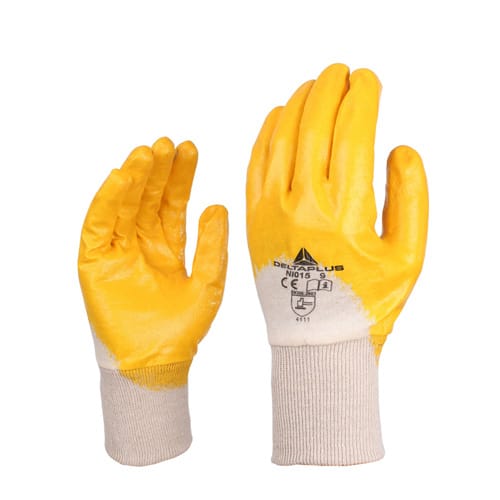 产品型号:201015(L=9号,XL=10号) 颜色 :黄色涂层 产品描述 : 轻型丁腈涂层防护手套,针织腕部,掌背透气,防油效果好,耐磨损,灵巧舒适。 材料 :手套100%丁腈涂层,硫化(乳胶丙烯腈丁二烯) 使用说明:多功能保护手套,对机械风险可以提供较高保护。使用寿命长。 储存说明:存于原包装中,避光避潮。
