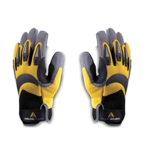 全新超细聚酰胺纤维材质,掌面/掌背重点部位加强型PVC耐磨损防护,腕部网状透气吸汗处理,亮黄醒目警示色,带魔术贴