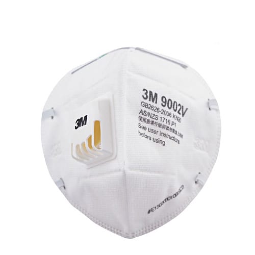 3M 9002V 颗粒物防护口罩(头带式/标准) 可用于防护某些非油性颗粒物,减除某些有机异味(矿物性粪车、金属粉尘、纤维粉尘花粉和雾等)