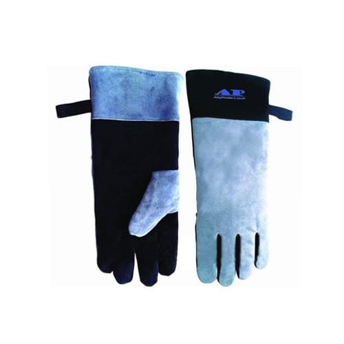 ●选用耐磨隔热牛二层芯皮,杜邦防火线缝制; ●加厚海绵内里,吸汗柔软舒适; ●最高耐温可达250℃。 ●35cm长。 ●尺码:L、XL