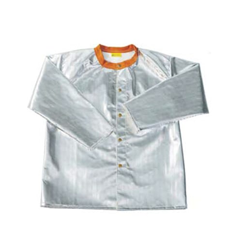 产品说明: ●铝箔防热衣著提供防热保护。 ●适用于炼钢厂、铸造场、玻璃厂、炉前作业...等有高温辐射热的场所。 ●台湾制造。 ●EN 367:欧规防火测试 ●可有效阻隔辐射热并抵抗熔化之金属泼溅