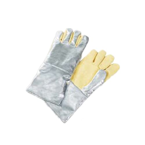 产品名称:防热手套 产品叙述:手指及手心部分由美国杜邦防弹纤维Kevlar制成。 产品用途:可有效防热、抗刮,外部披覆防热铝箔,可有效阻隔辐射热并抵抗熔化之金属泼溅。 可有效阻隔辐射热、对流热、接触热及熔化金属泼溅,并拥有高度之抗磨耗、耐切割、抗撕裂等特性。