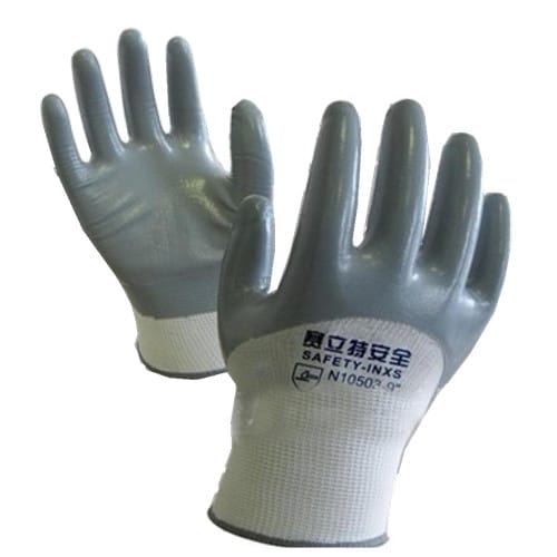 13针白色复合丝针织手套,手掌3/4浸丁睛光面涂层