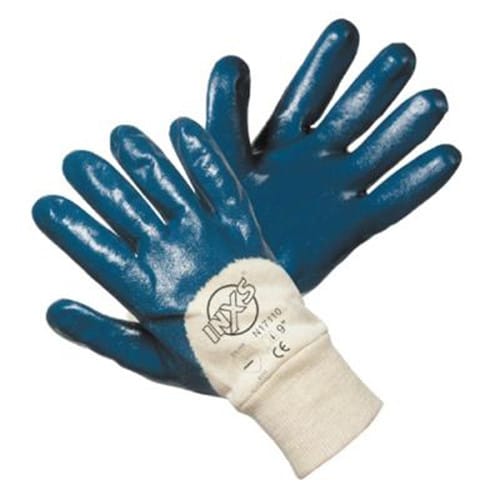 针织绒布里,手掌蓝色丁腈涂层开背手套