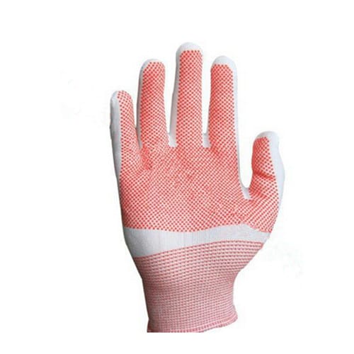 货号:0028 品名:超薄防滑手套 材质:韩国进口尼龙、PVC点塑 产品规格:8#、9# 产品介绍:零触感、无尘、透气、操作灵活、长时间配戴双手不会有疲劳感,同时具有优越的防滑功能!是全棉点塑手套良好的升级替代品! 产品用途:适用于无尘车间、发动机组装、汽车喷漆等行业。 包装:300付/箱