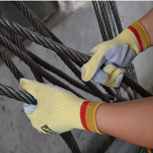 货号:0061 品名:防割缝皮手套 材质:防割纱线,牛二层皮革 规格:S、M、L、XL 特点:防割纱线精编而成。在手指和手掌部分缝有牛皮以增强耐磨性能。具有防割、耐磨的性能。可以在各种干燥和潮湿的环境中工作,保护双手不被锐利的金属、玻璃、瓷器等割伤。 用途:适用于金属冲压、汽车装癖、器具制造、装运与收货等工作。