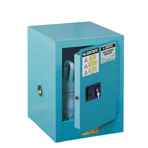 SureGrip®EX钢制腐蚀性工作台式安全柜;4加仑;带一块搁板;单门;手动关闭式