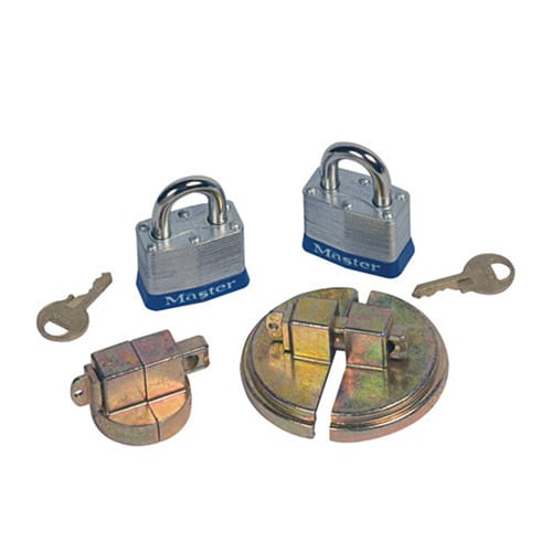 08510钢制圆桶套装: 适用于51mm或19mm桶孔塞; 可互换的双锁闩 带2把挂锁。