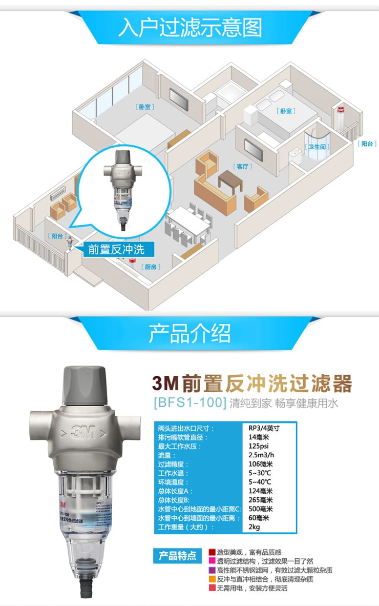 3M净水器前置过滤器 3M BFS1-100前置反冲洗系统