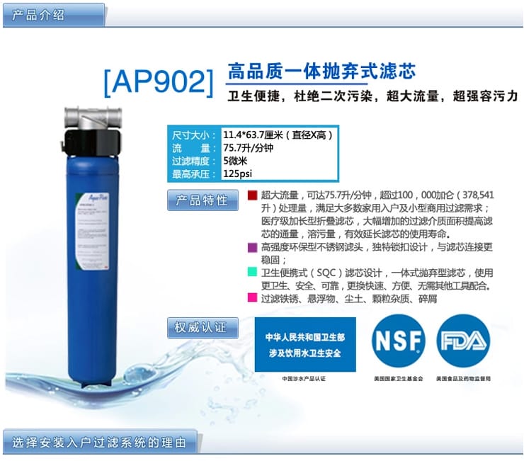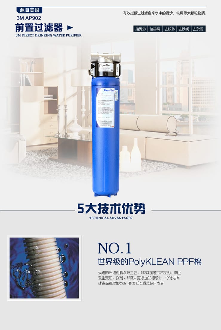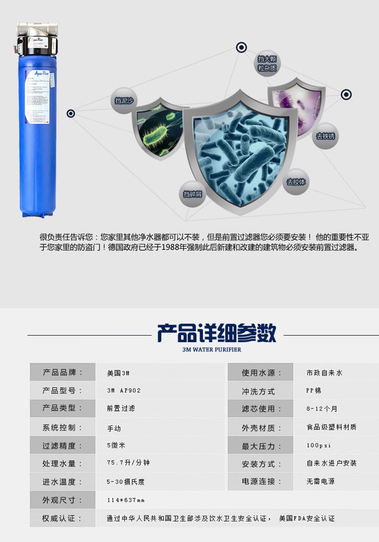 3M家用净水器 3M AP902全屋精滤系统