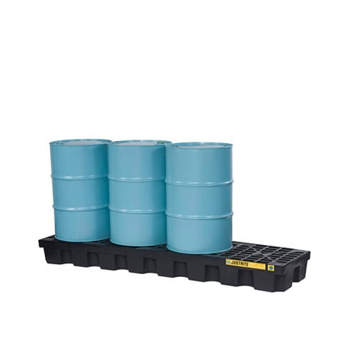 EcoPolyBlend™ 溢出物控制托盘由100% 再循环压模聚乙烯制成,可防止绝大多数危险性酸、碱和溶剂的泄漏,并且在恶劣环境中耐劣化性极强。是110 和200 升的圆桶或保存在室内的其他容器的理想平台。无缝结构,即使200 升圆桶出现故障,其内容物全部倾出的情况下,也能够避免泄漏。超大尺寸的溢出物盛漏托盘满足或超出最苛刻的溢出物控制标准。自定位式格栅可快速取下以进行清理。黑色可隐藏污垢和灰尘,使您的工作场所看起来干净卫生。有方形和狭长形两种外形选择。大型盛漏托盘(非再循环材料)有两种尺寸,即1 桶装或4 桶装规格,设计满足需要更大盛漏容量的要求。我们也提供黄色非再循环盛漏托盘。