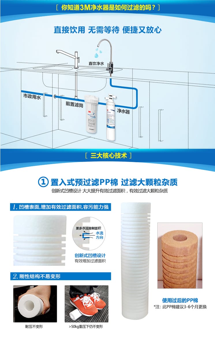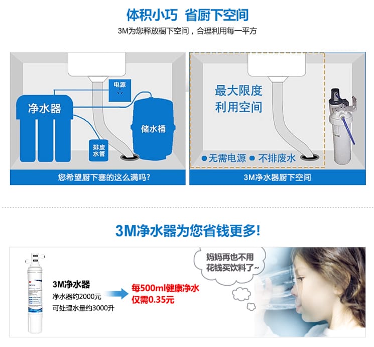3M净水器 家用末端直饮 3M CDW7101V净滋净水系统