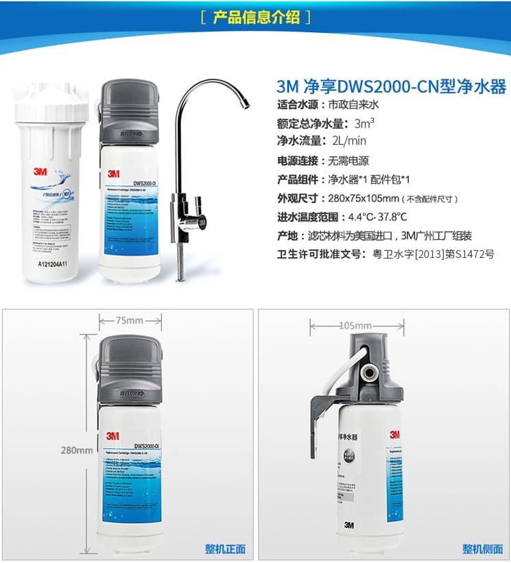 3M末端直饮净水器 3M DWS2000-CN净享净水系统