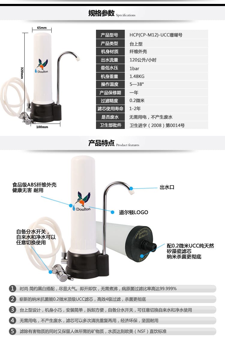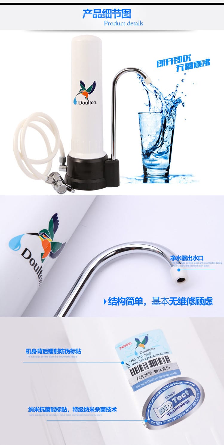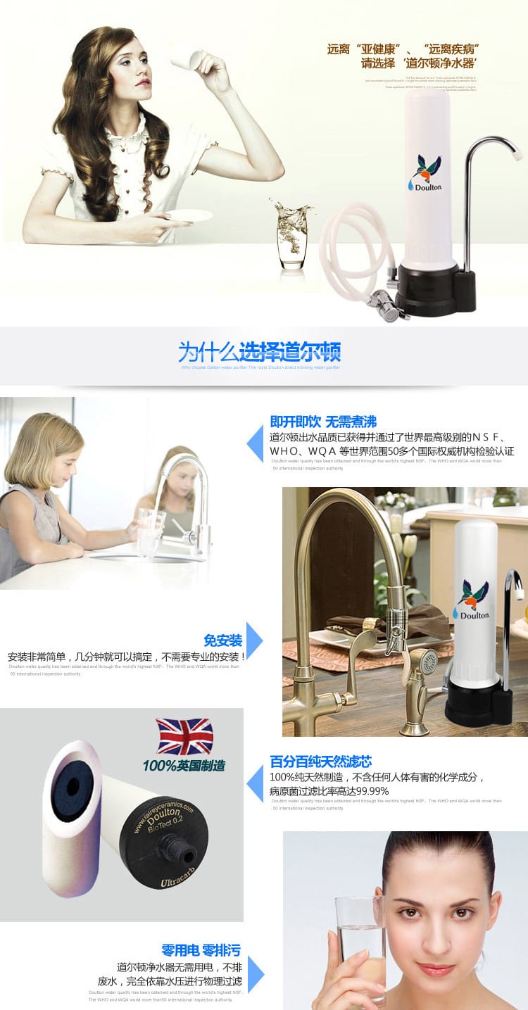 5、安全、环保、经济(无需用电,不产生废水,纯天然矽藻瓷滤芯可以多次清洗重复再用);